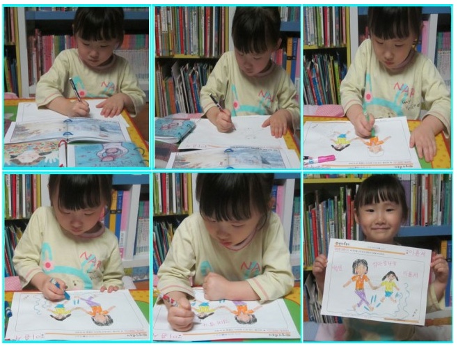 엄마와 바닷가에서 신나게 놀고 있는 딸과 엄마의 모습이 너무 보기 좋아서 윤서와 독후활동으로 한번 그려봤답니다. 여름엔 꼭 바닷가에 다시 가기로 약속을 하면서요.